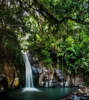 Deze waterval is niet alleen prachtig door zijn hoogte maar ook door de weelderige vegetatie rondom het water. Green vegetation around a tropical waterfall Indonesia, Asia.