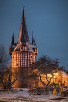 Winter Junker Hansen Toren bij Blauw Uur in Neustadt Hessen Duitsland