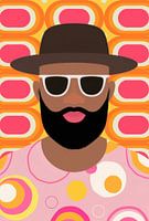 Een vrolijk zomers kleurrijk retro portret van een man met baard en hoed.