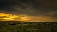 Een paar minuten na zonsondergang in de duinen bij Den Helder. De lucht krijgt haar mooie rode kleur door de voorspelde regen. In de verte is de vuurtoren de Lange Jaap te zien.