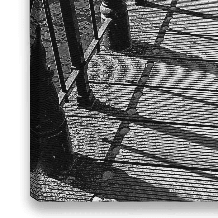 This is a picture of the Melkbrug (Milk bridge) downtown Haarlem, the Netherlands. I was takng pictures of the city and suddenly I saw the shadows of the bridge being perfectly aligned with the wood and the bolts. Just a lucky moment, I guess.