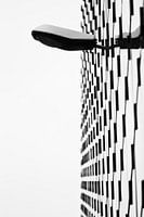 Mijn aandacht werd getrokken door de vierkante blokjes op deze gigantische parkeergarage in Leiden. Door bijna haaks op de hoek te gaan staan, ontstonden er mooie lijnen. Het lichtarmatuur is een goede blikvanger in de compositie. De zwart wit bewerking benadrukt het fraaie lijnenspel