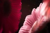 Twee bloemen samen in spiegelbeeld, de illusie van een beweging tot dansen.