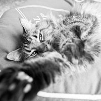 Donder is mijn Maine Coon kat die zich zo vrij voelt dat hij altijd lekker lijkt te liggen en zich heerlijk kan uitrekken. Als hij net wakker is wil hij altijd even lekker knuffelen. Ook met de camera.