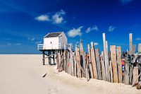 Rondom het Juttershuisje op Vlieland komt de kleur tot leven. Het verweerde hout, de bonte verzameling aangespoelde spullen, het oker van het zand en het blauw van de lucht vormen samen een levendig stilleven. Elk voorwerp draagt sporen van de zee, van afstand en tijd. In deze foto smelten natuur en menselijk spoor samen tot een beeld vol karakter. Het Juttershuisje staat centraal, maar de kleur vertelt het verhaal.