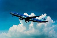 Een KLM Airbus A330-200, genaamd Parliament Square Edinburgh, stijgt op vanaf Schiphol Airport Amsterdam. Registratie nummer PH-AOE.