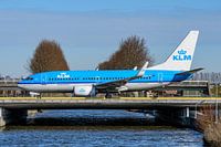 KLM Boeing 737-700 (PH-BGU) taxiet via taxibaan Victor naar de Polderbaan en passeert hier de brug over de Hoofdvaart.