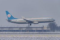 KLM Boeing 737-800 (PH-BXA) in de winter.