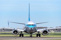 De PH-BXA, een Boeing 737-800 van de KLM, taxiet richting de Polderbaan.