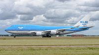 Take-off van de "City of Johannesburg" Boeing 747-400 van de KLM vanaf de Polderbaan van luchthaven Schiphol.
