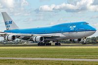 Een Boeing 747-400 van de KLM, de PH-BFP met de naam City of Paramaribo is geland op de Polderbaan.