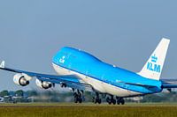KLM Boeing 747 Jumbojet vliegtuig dat opstijgt vanaf de luchthaven Schiphol bij Amsterdam in Nederland. KLM is een afkorting van haar volledige wettelijke naam, Koninklijke Luchtvaart Maatschappij N.V. en maakt deel uit van Air France-KLM.