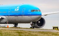 Deze KLM Boeing 777 taxiet richting de Polderbaan om niet veel later op te stijgen naar een verre bestemming.