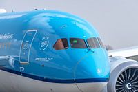 Close-up van de cockpit van een Boeing 787-9 Dreamliner van de KLM. Het toestel draagt de naam "Tulp" en heeft als registratie PH-BHP.