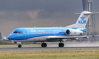 Fokker 70 van KLM Cityhopper vertrekt vanaf de Polderbaan van luchthaven Schiphol.