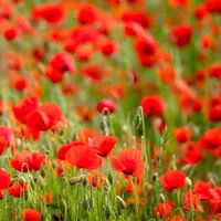 Een veld vol met klaprozen in Frankrijk