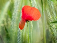 Een enkele klaproos in een korenveld in Frankrijk