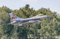 Bij deze F-16 van het 313 Squadron is de staart voorzien van een speciale staart ter gelegenheid van de NATO Tigermeet.