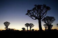 De kokerboom is eigenlijk geen boom. De Aloe Dichotoma is een uit de kluiten gewassen vetplant. Hier een foto van het bekende Kokerbomenwoud bij Keetmanshoop, een stadje tussen Lüderitz en de Namib Desert in Namibië. De kokerboom komt verder alleen voor in erg droge streken in het noordoosten van Zuid-Afrika en in Botswana. De holle takken werden vroeger gebruikt als pijlkokers door de lokale bevolking. [EOS1dMrkII|1/160s + 24mm|f3,2]