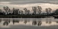 Het Groote gat bij Oostburg, gezien vanaf de Philipsweg. Grauw weer. De kale bomen spiegelen dan nog net in de kreek. Daarom gekozen voor een breedte-formaat.