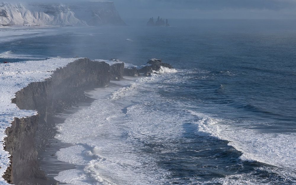 Winterlandschap op Kaap Dyrholaey in IJsland