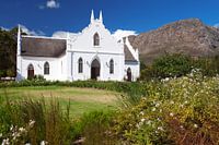 In Zuid-Afrika zie je veel Nederlandse invloeden terug. Zo zijn er veel Kaaps-Hollandse huizen te vinden. Ook deze kerk in Franschhoek heeft overduidelijk Kaaps-Hollandse trekjes.
