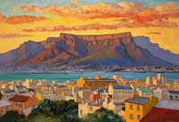 Koop dit landschapskunstwerk Kaapstad Zuid-Afrika bij zonsondergang met de Tafelberg op de achtergrond van MIROKKU als print op canvas, aluminium dibond, (ingelijste) fotoprint, behang en ArtFrame. Voor jou op maat geprint in Fine-Art kwaliteit.