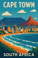 Een kleurrijk panorama van Kaapstad ontvouwt zich voor de kijker, met majestueuze bergen, gouden stranden en levendige stadslichten. De harmonieuze combinatie van blauwe en aardetinten straalt rust en avontuur uit, perfect voor een woonkamer waar herinneringen en reisdromen tot leven komen. Een echt hoogtepunt voor elke muur!