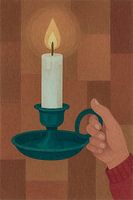 De minimalistische vormen en het harmonieuze kleurgebruik maken deze illustratie tijdloos en veelzijdig. Het past perfect in een gezellig winterinterieur, maar kan ook het hele jaar door een plek krijgen als symbool van licht en hoop. De combinatie van klassieke kaars en moderne, grafische stijl zorgt voor een uniek contrast dat in elk interieur een blikvanger wordt.