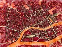 Koop dit abstracte kunstwerk Kaart van Angers in de stijl 'Amber Autumn' van Maporia op canvas, aluminium dibond, (ingelijste) fotoprint, behang en ArtFrame, op maat geprint in Fine-Art kwaliteit.