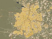 Deze kaart van Apeldoorn is geïnspireerd door het kleurenpalet van de het schilderij 'De Kus' van Gustav Klimt. De donkerblauwe en oranje tinten geven deze kaart van Apeldoorn een art deco uitstraling.