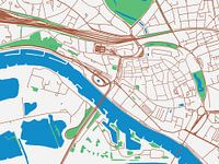 Verken Arnhem Centrum met deze kaart in de stijl Urban Ivory. Met een kleurenpalet bestaande uit wit, rood, groen en blauw, brengt deze kaart Arnhem Centrum tot leven. Elk element op de kaart is met zorg gekozen en heeft een traditionele kleur gekregen, waardoor ze opvallen tegen de witte achtergrond.