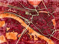 Koop dit abstracte kunstwerk Kaart van Arnhem centrum in de stijl 'Amber Autumn' van Maporia op canvas, aluminium dibond, (ingelijste) fotoprint, behang en ArtFrame, op maat geprint in Fine-Art kwaliteit.