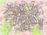 Koop de illustratie Kaart van Augsburg in de stijl 'Soothing Spring' van Maporia op canvas, aluminium dibond, (ingelijste) fotoprint, behang en ArtFrame, op maat geprint in Fine-Art kwaliteit.