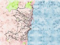 Deze kaart van Bastia heeft de onze op maat gemaakte stijl “Soothing Spring”. Deze stijl is geïnspireerd door Japanse tekeningen van fleurige kersenbloesems. Met zijn levendige kleuren brengt deze kaart van Bastia uw kamer tot leven.