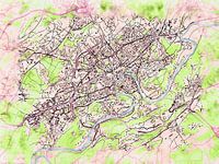 Deze kaart van Besançon heeft de onze op maat gemaakte stijl “Soothing Spring”. Deze stijl is geïnspireerd door Japanse tekeningen van fleurige kersenbloesems. Met zijn levendige kleuren brengt deze kaart van Besançon uw kamer tot leven.