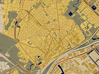 Deze kaart van Beverwijk is geïnspireerd door het kleurenpalet van de het schilderij 'De Kus' van Gustav Klimt. De donkerblauwe en oranje tinten geven deze kaart van Beverwijk een art deco uitstraling.