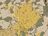 Deze kaart van Bladel is geïnspireerd door het kleurenpalet van de het schilderij 'De Kus' van Gustav Klimt. De donkerblauwe en oranje tinten geven deze kaart van Bladel een art deco uitstraling.