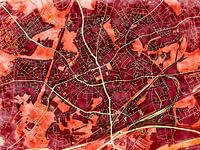 Deze kaart van Bottrop heeft onze op maat gemaakte stijl "Amber Autumn". De kaart heeft de natuurlijke kleuren van het seizoen, geïnspireerd op herfstbladeren. De aardse tinten van deze kaart van Bottrop zullen uw interieur een warme uitstraling geven.
