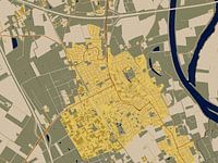 Deze kaart van Boxmeer is geïnspireerd door het kleurenpalet van de het schilderij 'De Kus' van Gustav Klimt. De donkerblauwe en oranje tinten geven deze kaart van Boxmeer een art deco uitstraling.