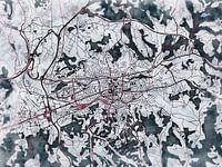 Deze kaart van Brive-la-Gaillarde heeft de onze op maat gemaakte stijl "White Winter". De donkerrode straten lopen als warme slagaders door het koude winterse landschap. Een dik pak witte sneeuw bedekt de velden en de stad, terwijl de vegetatie hun bladeren hebben verloren en zich in het donker voorbereiden op de lente. Deze winterse kaart van Brive-la-Gaillarde geeft uw interieur een frisse uitstraling.