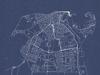 Verken Den Helder met deze kaart in de stijl Royaal Blauw. De witte wegen contrasteren tegen een diep blauwe achtergrond. In combinatie met een subtiele linnen textuur voegt deze kaart een vleugje verfijning en rust toe aan elke ruimte waarin het wordt opgehangen.