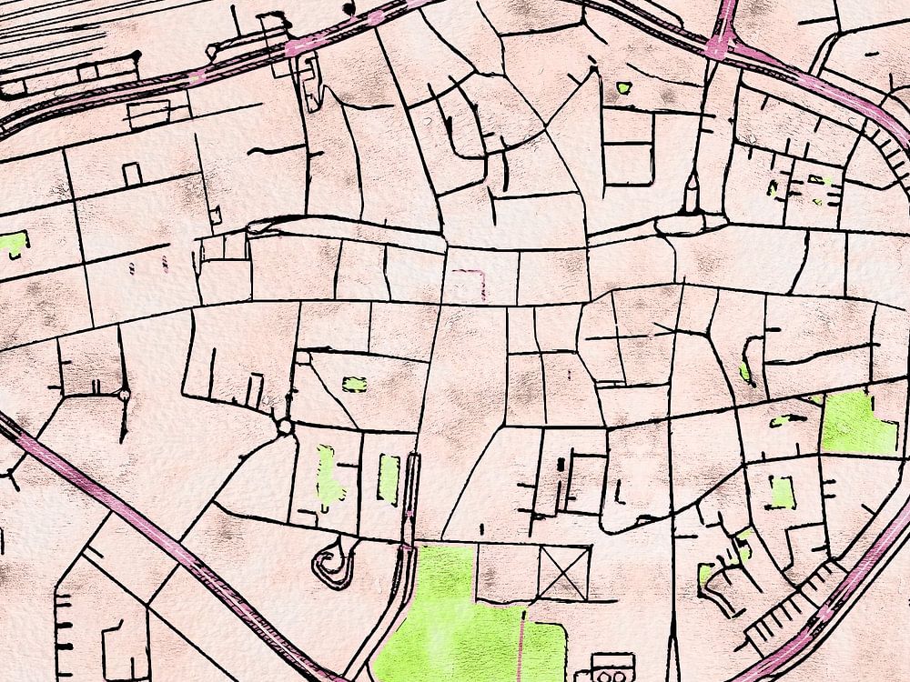 Deze kaart van Dortmund centrum heeft de onze op maat gemaakte stijl “Soothing Spring”. Deze stijl is geïnspireerd door Japanse tekeningen van fleurige kersenbloesems. Met zijn levendige kleuren brengt deze kaart van Dortmund centrum uw kamer tot leven.