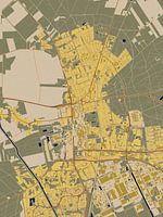 Deze kaart van Emmen is geïnspireerd door het kleurenpalet van de het schilderij 'De Kus' van Gustav Klimt. De donkerblauwe en oranje tinten geven deze kaart van Emmen een art deco uitstraling.