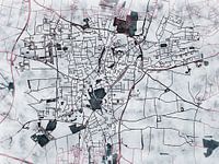 Deze kaart van Erding heeft de onze op maat gemaakte stijl "White Winter". De donkerrode straten lopen als warme slagaders door het koude winterse landschap. Een dik pak witte sneeuw bedekt de velden en de stad, terwijl de vegetatie hun bladeren hebben verloren en zich in het donker voorbereiden op de lente. Deze winterse kaart van Erding geeft uw interieur een frisse uitstraling.