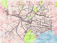 Koop dit abstracte kunstwerk Kaart van Fréjus in de stijl 'Soothing Spring' van Maporia op canvas, aluminium dibond, (ingelijste) fotoprint, behang en ArtFrame, op maat geprint in Fine-Art kwaliteit.