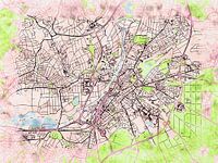 Deze kaart van Gießen heeft de onze op maat gemaakte stijl “Soothing Spring”. Deze stijl is geïnspireerd door Japanse tekeningen van fleurige kersenbloesems. Met zijn levendige kleuren brengt deze kaart van Gießen uw kamer tot leven.