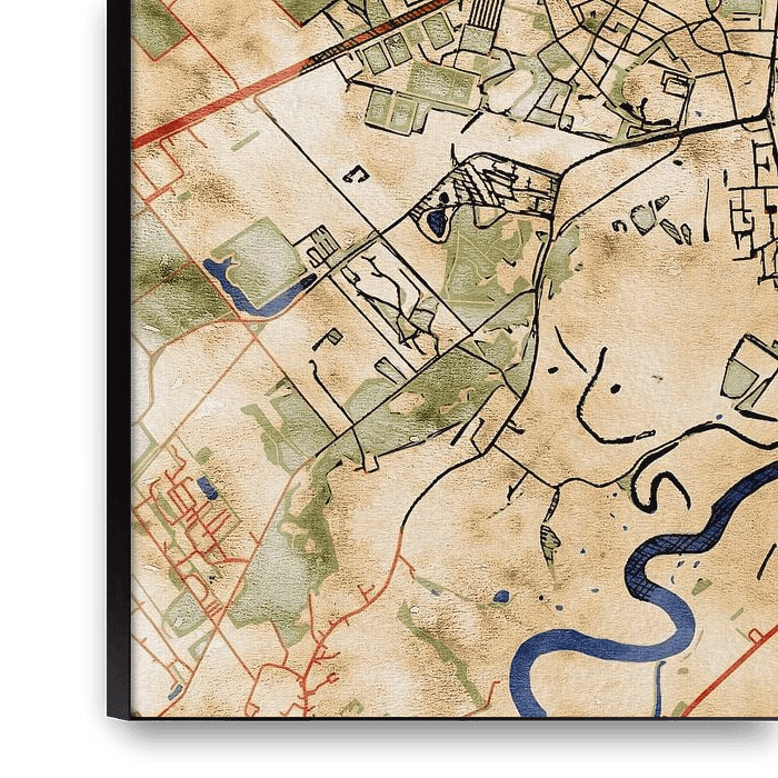 Deze kaart van Hardenberg heeft onze op maat gemaakte stijl “Serene Summer”. Deze stijl kenmerkt zich door de warme, zonovergoten aardse tinten. Het kleurenpalet is geïnspireerd op de art nouveau stijl van rond de eeuwwisseling. Deze kaart van Hardenberg geeft uw interieur een klassieke, moderne uitstraling.