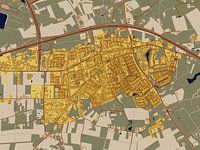Deze kaart van Heesch is geïnspireerd door het kleurenpalet van de het schilderij 'De Kus' van Gustav Klimt. De donkerblauwe en oranje tinten geven deze kaart van Heesch een art deco uitstraling.