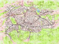 Koop de illustratie Kaart van Iserlohn in de stijl 'Soothing Spring' van Maporia op canvas, aluminium dibond, (ingelijste) fotoprint, behang en ArtFrame, op maat geprint in Fine-Art kwaliteit.